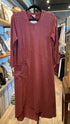 Knit mineral wash dress, round neckline, 3/4 sleeve, front pocket