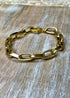 Indulge in understated luxury with our Chunky Gold Chain Bracelet. The 7 1/2 inch chain, complete with large lobster claw closure effortlessly adds a touch of sophistication to any outfit. Wear it alone or layer with your favorite stack for a chic look.