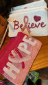 Believe and Hope seed bead wrist purse. Perfect for storing you make up, jewelry, etc.