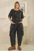 This Black Washed Short Sleeve Jumpsuit combines effortless style with functional design. Crafted with a mineral wash for a unique vintage look, it features a convenient zip front and multiple cargo pockets with secure zipper closures to keep essentials close. The relaxed fit and half sleeves with button tabs offer comfort and versatility, while back pockets add extra storage. Perfect for casual days when you want to look sharp without sacrificing ease.