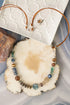 This necklace layer features semi-precious stones including kyanite, peach moonstone, amazonite and more. It is completed on leather with sterling silver adjustable lobster claw clasp.