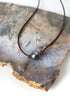 This simple and stylish necklace for women features a dark blue fresh water pearl knotted on brown leather cord.