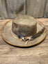 Experience unprecedented elegance and style with the Blue Grey Hand Distressed Hat by Paula Carvalho. Individually hand-painted and distresssed, this hat features a unique hat band and exquisite feather. Adjustable to a perfect fit, it is truly one of a kind.