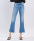 Experience the perfect blend of style and comfort with these high-rise flare jeans. Crafted from stretch denim, they feature a flattering high waist and a distinctive slanted raw hem for an edgy look. The cropped length and wide leg opening add a modern twist, making them ideal for showcasing your favorite footwear. With a 10" rise, 27" inseam, and 16.5" leg opening, these jeans offer a comfortable fit that enhances your silhouette. Model is 5'10" and wears size 26. Elevate your wardrobe with these versatile, fashion-forward jeans.