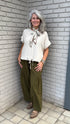 Experience comfort and style with these full-length cotton pants, designed with an elastic waistband and adjustable drawstring for a perfect fit. Featuring practical side pockets and a charming gathered detail beneath each pocket, these pants offer both function and flair. The wide-leg silhouette enhances movement and creates a flattering, relaxed look ideal for any casual occasion.