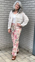 Elevate your wardrobe with our Crop Linen Beige Jacket. This luxurious piece features a stylish collar and long sleeves, perfect for cooler weather. The flap front chest pockets are adorned with elegant scalloped trim, while the button front adds a touch of sophistication. The cropped length adds a modern twist to this timeless jacket.