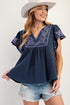 Embroidery Cotton Gauze Babydoll Top Blueberry
