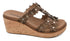 - Stylish Floral Design: The straps are adorned with delicate, 3D floral accents in a rich brown leather finish, adding a touch of bohemian charm to any outfit. Comfortable Wedge Heel: The cork wedge provides a perfect balance of height and stability, offering both comfort and confidence for all-day wear. Also has the cushioned foot bed!