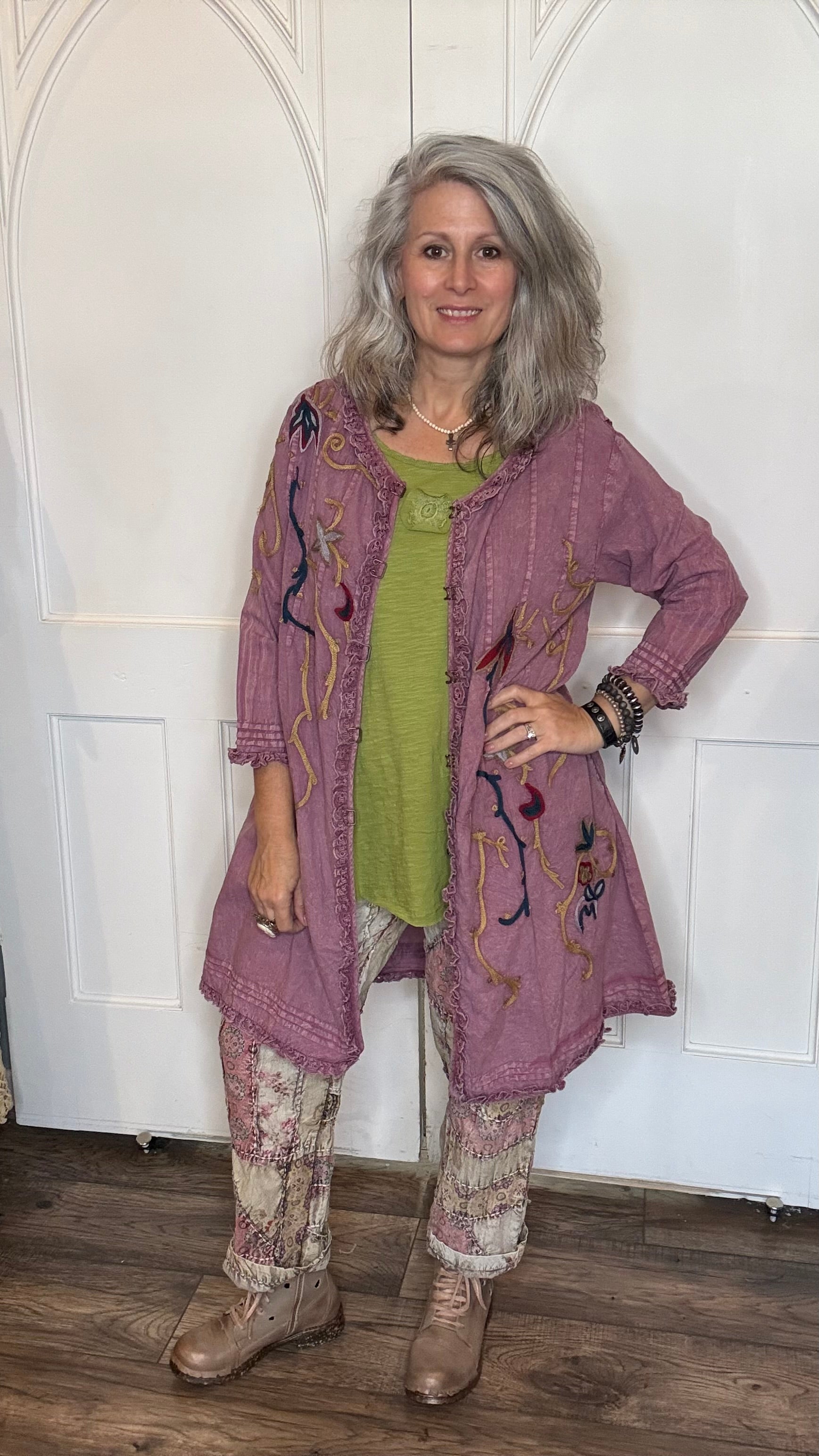 We love this cami - it is the perfect layering piece for your gypsy boho style. This is great with Jaded Gypsy and Magnolia Pearl pieces. The cami comes as a ONE SIZE with adjustable spaghetti straps. Will fit from Small to XL.
