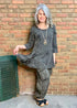 This tunic has a wonderful cut, with a round neckline, slightly fitted upper, a full cut around the hips and 3/4 length sleeves. There is a floral motif embellishment on both sides at the bottom of the tunic. It has big pockets located between the front and side seaming.