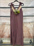 Beautiful V-neck V back tie shoulder strap, fuchsia and green stripe dress, crochet lace detail along the neckline comes with a beautiful light green hydrangea, maxi length one size fits most it has side same pockets