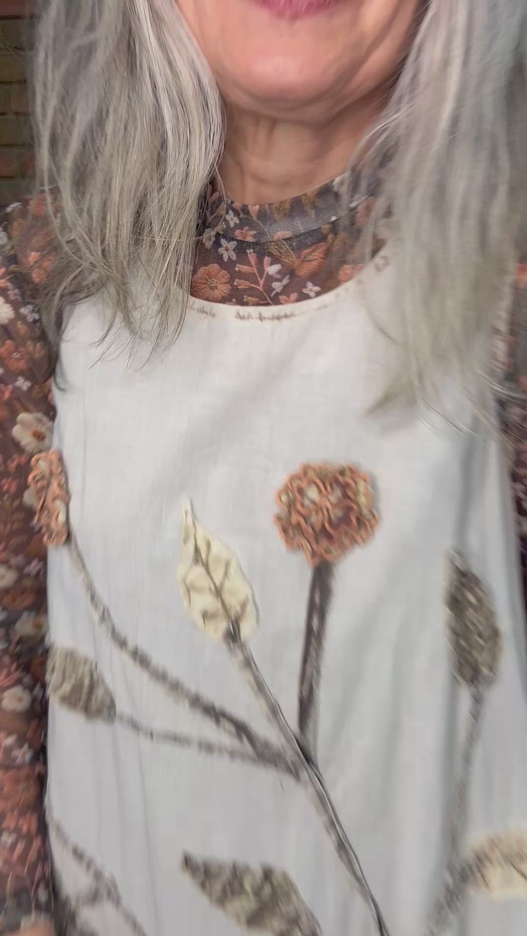 This beautiful sleeveless A-line dress showcases an eye-catching 3D floral and vine applique set against a mineral-washed backdrop. Crafted from 100% cotton, its midi length offers both comfort and style for any occasion.