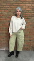 This mineral-washed cotton top offers relaxed comfort with a modern twist. Featuring a flattering V neckline and dropped shoulders, its standout bubble-shaped sleeves add volume and character. Pronounced seam details complete the look with subtle structure, making it a stylish yet easy-to-wear essential.