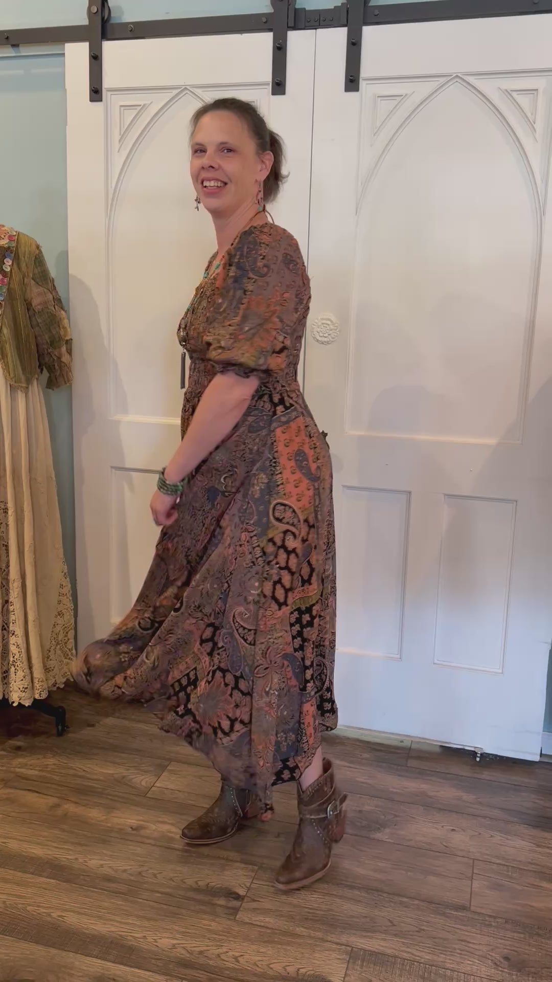 This elegant black dress features a flattering elastic smocked bodice and a chic square neckline that enhances your silhouette. The puffy 3/4 sleeves with elastic cuffs add a touch of romantic charm, while the midi length and subtle ruffle details create graceful movement. Perfect for both casual outings and special occasions, this dress effortlessly combines comfort and style for a versatile addition to your wardrobe.