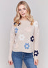Indulge in luxury with Embroidered Flowers Plushy Crew Neck Sweater. This sophisticated piece features elegant long sleeves and a delicate ribbed knit neckline, cuffs, and hemline. Adorned with petal flowers in powder blue, pink, navy blue, and ivory, on an oatmeal fleck background, this sweater is the perfect addition to your wardrobe. Elevate any outfit with this exclusive and tasteful sweater.