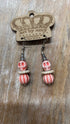 Pink ceramic skulls, disk and ball on fish hook earrings.