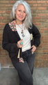 Embrace effortless style with this Black Patched Long Sleeve Cardigan. Crafted in a soft mineral wash and textured knit, its roomy fit ensures comfort all day long. The unique patchwork neckband adds a subtle, distinctive touch that elevates your look, making it perfect for layering in cooler weather.