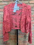 Be bold and stand out with our Lace and Suede Brick Jacket! This trendy EYELET TIED FRINGE LACE CROP JACKET will add a touch of adventure and daring to your wardrobe. Embrace your unique style and make a fashion statement with this must-have piece. Take a risk and elevate your look with our lace and suede jacket.