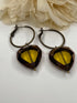 The Amber Crystal Heart Earring says romance and love. This lovely amber crystal heart is the focal point of the earring. All drop from a brass spring closure hoop. The total length is 2"
