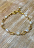 Introducing the Gold Freshwater Pearl Chain Bracelet. Crafted with exquisite freshwater pearls and adorned with paperclip links, this bracelet evokes a sense of luxury and sophistication. Measuring between 7 and 8 inches, it pairs perfectly with our Maryna collection for a timeless and elegant look. Elevate your style with this stunning piece.
