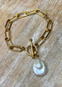 Indulge in luxury with our Gold Freshwater Pearl Drop Toggle Bracelet. The stunning freshwater pearl delicately hangs from a gold paperclip toggle chain bracelet, measuring 7 1/4 inches. Elevate any outfit with this sophisticated and exclusive piece.  Be sure to pair with the freshwater pearl chain bracelet.