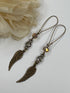 Add a touch of elegance with these Crystal Bead and Wing Dangle Earrings. Featuring a graceful brass wing, a sparkling faceted crystal bead, and a small crystal, all suspended from a secure wire spring hook, these earrings effortlessly enhance your look with subtle shimmer and refined charm. Perfect for elevating both casual and formal outfits.