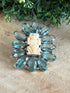 Add sparkle and charm with the Crystal Cat Ring, featuring a beautifully bone-carved cat surrounded by radiant aquamarine crystals. This eye-catching piece combines elegance and fun, making it a perfect conversation starter. Elevate your style with this unique blend of bling and feline flair.