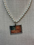 Soldered Graphic of American Flag on pearl necklace.