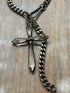 Large Crystal Cross on a curb chain Necklace. Necklace is 17" long including the carabiner type closure, and the cross measures 4" tall with the chain charm hanging 6 1/2". Both the cross and the chain are removable with the spring ring in the front.