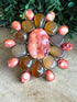 Elevate your fall style with this stunning cuff bracelet featuring an array of natural stones in muted reds and golds. Its elegant oval shape, measuring 4" wide by 4½" tall, makes a bold yet refined statement. Adjustable for a comfortable fit, this unique accessory effortlessly complements seasonal wardrobes, adding warmth and sophistication to any outfit.