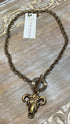 One of a Kind brass longhorn on a brass chain with front toggle closure.