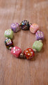The Rainbow Dice Bracelet is a playful and colorful accessory with iridescent rainbow colored dice. The stretch design provides comfort and flexibility, making it a stylish addition to any outfit. Perfect for adding a touch of whimsy to your look.