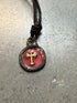 This necklace features a rustic red enamel disk embossed with a gold cross, creating a striking focal point. Suspended from a simple leather cord with a secure lobster claw clasp, it offers an adjustable length of 16" plus a 2" extension for a perfect fit. Its blend of bold design and understated materials makes it a meaningful accessory that complements both casual and refined styles.