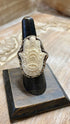 Embrace delicate luxury with our Small Hamsa Ring. The hamsa, carved from bone, is a symbol of protection and good luck. Mounted on an adjustable ring, this piece can be worn comfortably and stylishly by all. Elevate your look with this exclusive and meaningful accessory.