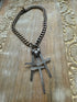 Triple charm crosses on a curb chain necklace with front spring closure and charm holder. Necklace measures 17" and the largest cross measures 3 3/4" tall.