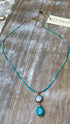 One of a kind turquoise and pearl focal necklace. Tiny turquoise beads mixed with gold, adjustable from 16-18" with lobster claw closure.