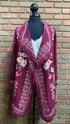 Discover the stunning beauty of our waterfall cardigan. Crafted from a luxurious sweater knit material, this piece features a rich, deep Burgundy hue and intricate floral embroidery. Its long sleeves and side seam pockets make it the ideal layering piece for any occasion.
