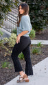 Step up your denim game with our Mid Rise Distressed Hem Crop Flare jeans. Crafted from comfortable stretch denim in a sleek black wash, these jeans feature a mid rise for a flattering fit. The distressed hem adds a touch of edginess to these chic and versatile jeans. Elevate your everyday wardrobe now.