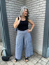 Why dress like everyone else when you can wear the Portia Pants. An ankle-length pant featuring a flat-front and elastic back waistband, with a side buttons entry for easy fit. There is decorative top stitching and side seam pockets.