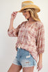 Embrace effortless style with this Rugged Red Plaid Tie Front Top. Crafted from self-distressed flannel fabric, it features a relaxed fit and 3/4 sleeves for all-day comfort. The rounded V-cut neckline is enhanced by beaded tassels and delicate ruching, adding a unique, handcrafted touch. Perfect for layering or wearing solo, this top blends rugged charm with casual elegance.