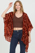 Elevate your style with the Rust Burnout Velvet Kimono, crafted from luxurious burn-out velvet that adds subtle texture and warmth. Its one-size design offers a comfortable, flattering fit for all body types, making it an effortless layering piece for any outfit. Perfect for adding a touch of vintage-inspired elegance, this kimono blends comfort and style seamlessly.