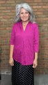 Indulge in pure sophistication with our Crinkle V-Neck Top in classic white. This luxurious piece features a flattering V-neck and 3/4 sleeves, accentuated by a front pleat. The over-the-hip length and wonderful crinkle fabric make it perfect for layering under cardigans or pairing with a solid or print bottom. Elevate your wardrobe with this exclusive essential.