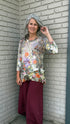 This Garden Print Criss Cross Mesh Top blends delicate watercolor-inspired florals with unique textures for an effortlessly chic look. The crinkle fabric body offers a comfortable, flattering fit, while the asymmetric mesh ruffle hem adds eye-catching movement. Featuring a classic crew neck and elegant 3/4 sleeves, this top brings a fresh, artistic touch to your wardrobe, perfect for day-to-evening style.