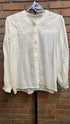 Sophisticated and luxurious, this 100% cotton blouse features a mandarin collar and delicate pin tucking details. The button-up design is adorned with intricate lace and embroidery details on the yoke, adding an exclusive touch.