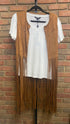 Wonderful faux suede long fringe vest.  True to size, maybe a little oversized.  Stay true or size down one.