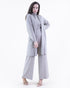 Elevate your wardrobe with this khaki tight knit sweater cardigan, featuring an open front and a flattering below-the-knee length. Its long sleeves offer cozy warmth without sacrificing style. For a complete, sophisticated look, pair it with the matching sleeveless turtleneck top and wide-leg pants—together, they create an effortlessly chic ensemble perfect for any occasion.