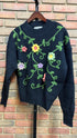 Waffle knit long sleeve crewneck sweater with lovely three-dimensional floral vines