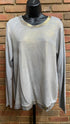 Indulge in luxury with our Gold Sprayed Long Sleeve Sweater T-Shirt. A sophisticated blend of fashion and comfort, this straight cut tee features a crew neck and long sleeves for a timeless look. The front is delicately sprayed with metallic gold, while the neckline and hemline add a touch of elegance with a metallic silver fleck. Stay true to size for the larger of your chest or hips for the ultimate fit.