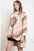 Indulge in luxury with our Quilted Button Up Tunic Top. Handcrafted with a quilted lone star pattern in a sophisticated beige combo, featuring a delicate peachy/pink center. The long sleeves, China collar, and high low hemline with side slits exude elegance. Perfect for elevating any look. Back length just to the knee.