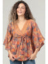 The V Neck Floral Print Drawstring Waist Kaftan Top combines timeless charm with distinctive flair. Showcasing a floral pattern and adjustable waist tie, its 3/4 sleeves make it perfect for daytime gatherings. This versatile kaftan embodies Nostalgia’s poetic, bohemian essence—designed for the stylish, adventurous woman who embraces individuality and effortless chic.